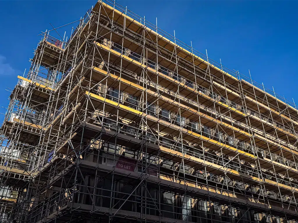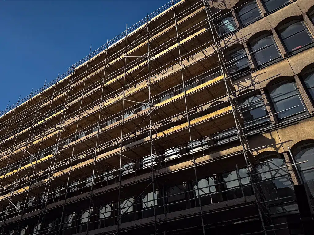 The hoist is being erected and scaffolding installation is well underway, improving site access and enabling external works to progress swiftly. - Lift replacement works are underway