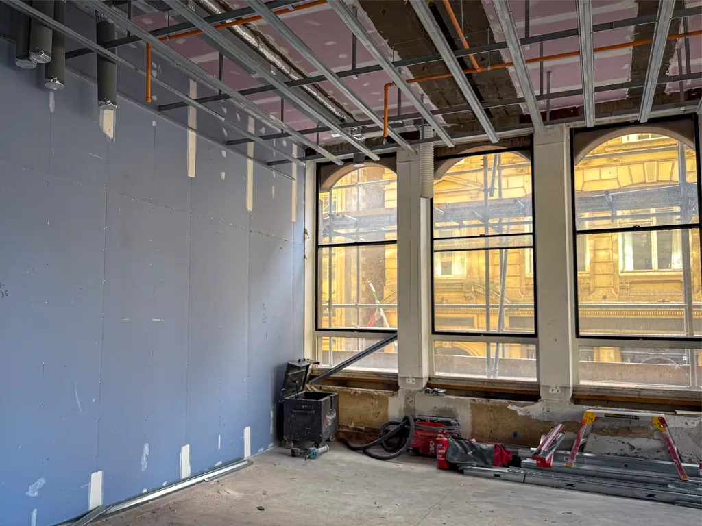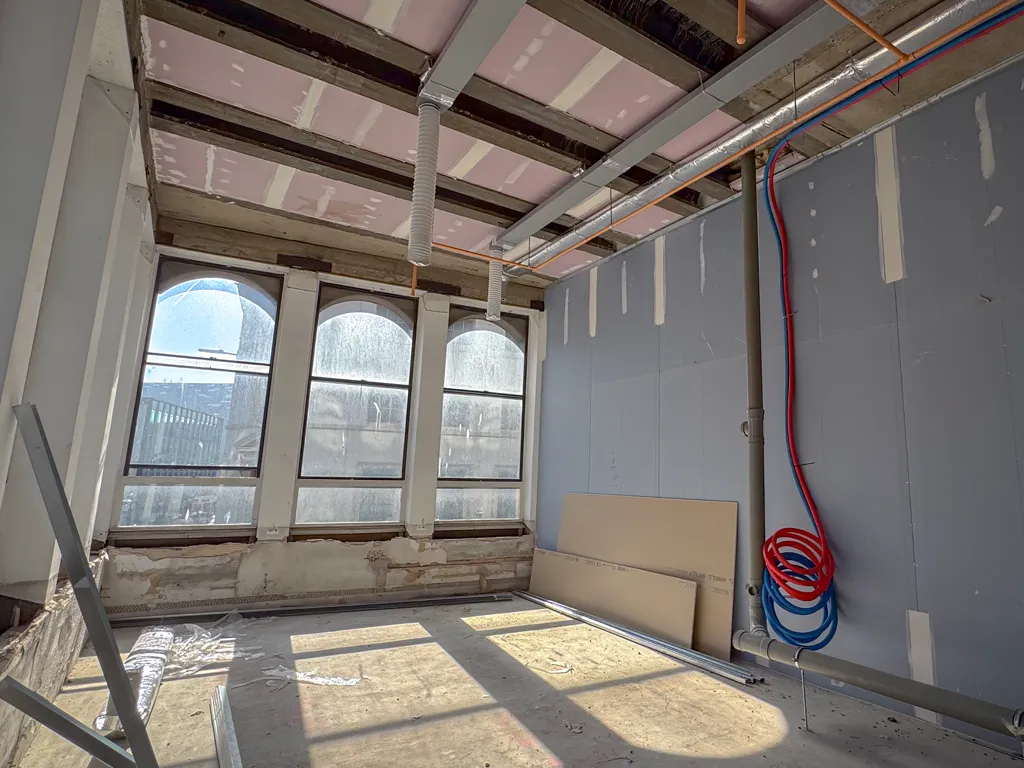 All new windows for the refurbished elevations have now been ordered, with manufacturing underway to support the next phase of the external upgrade. These units will significantly improve both the performance and appearance of the building as it transitions from office use into luxury residential accommodation. - Apartment walls ongoing on all levels