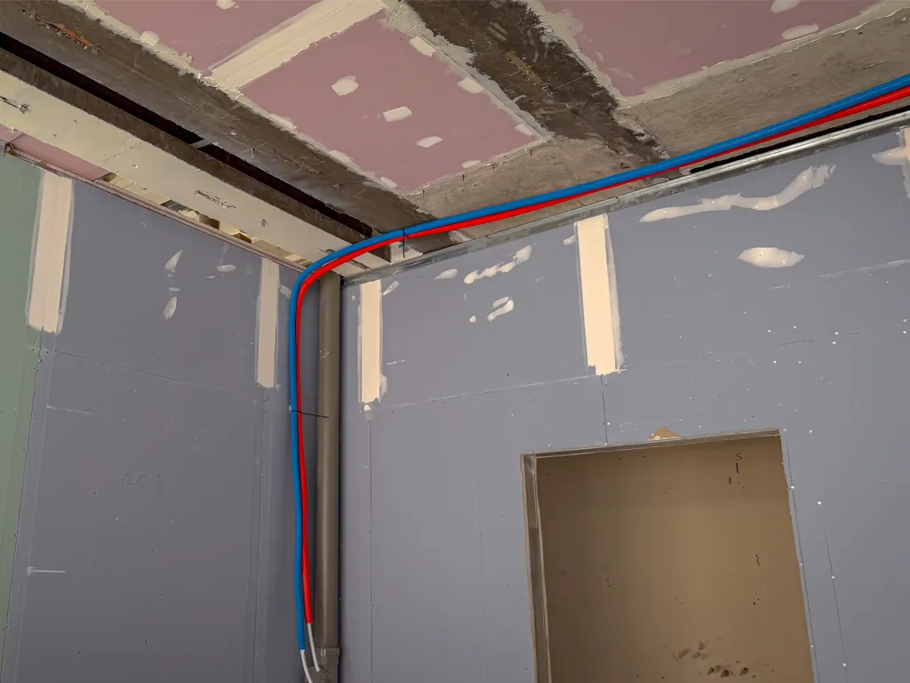 Plumbing teams are actively installing soil vent pipes on all floors, advancing the main vertical drainage routes required for the new apartments. These essential services are being coordinated closely with other trades to keep the wider mechanical programme on track. - Electricians first fixing on levels 2 and 3