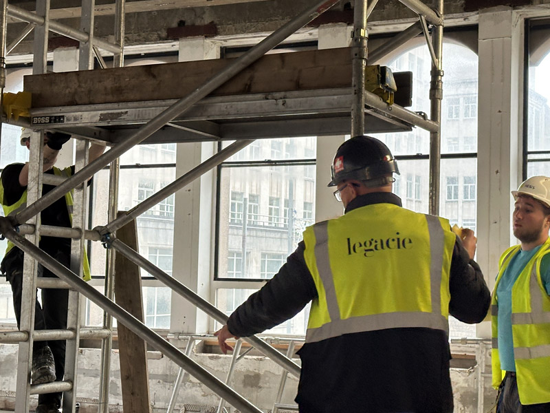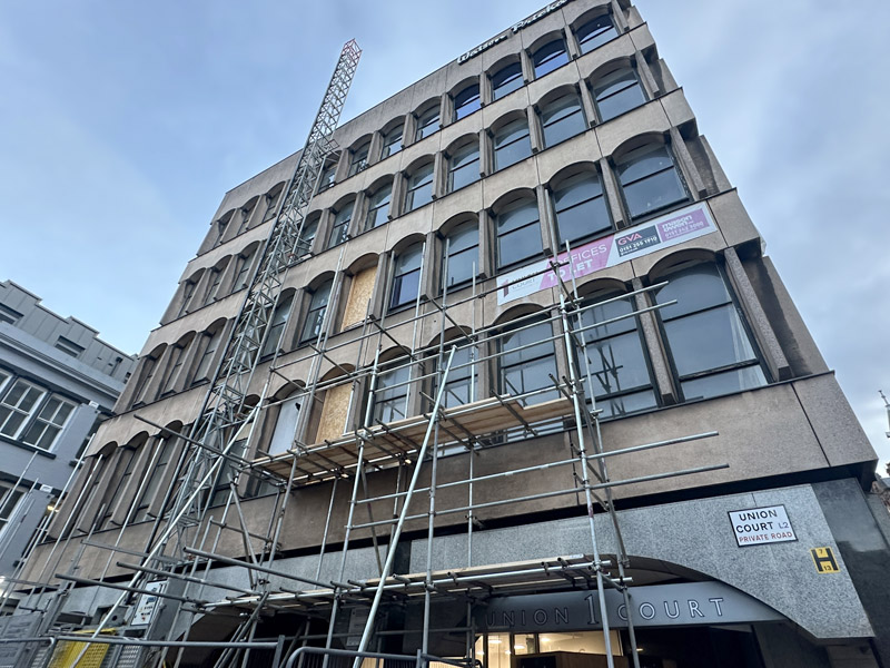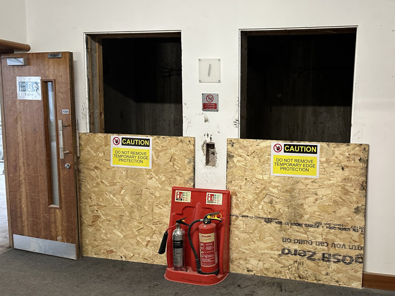 The hoist is being erected and scaffolding installation is well underway, improving site access and enabling external works to progress swiftly. - Lift replacement works are underway