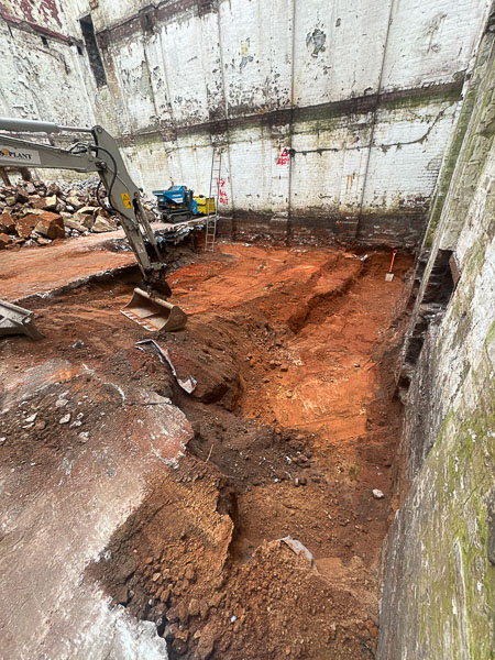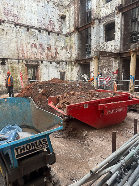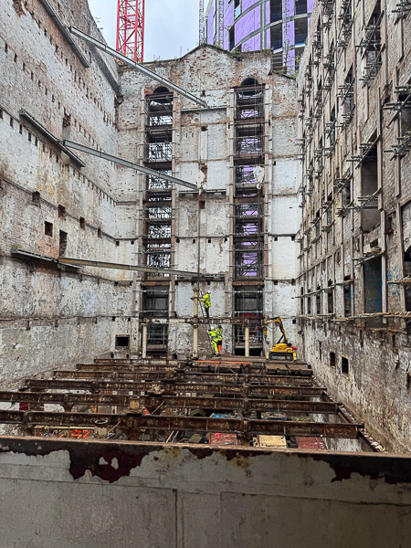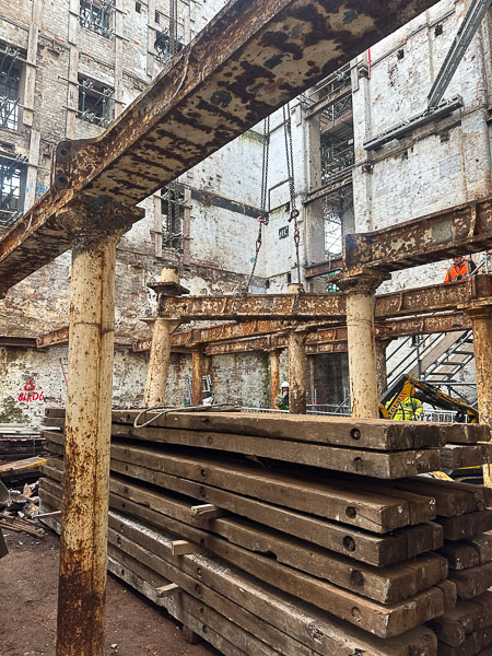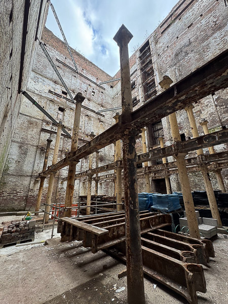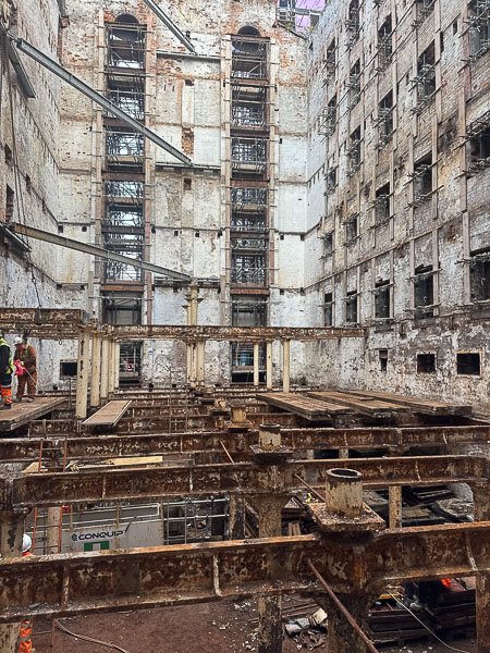 Loading Bay Shutters – Large shutters from Beckwith Street and the atrium sides have been carefully removed, stored, and will be reused later, following heritage approval.