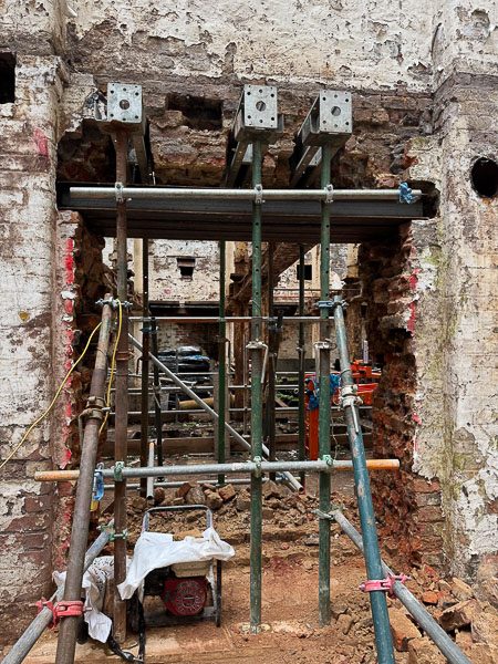 Temporary Supports – Window heads have been propped up to keep structures stable during demolition.