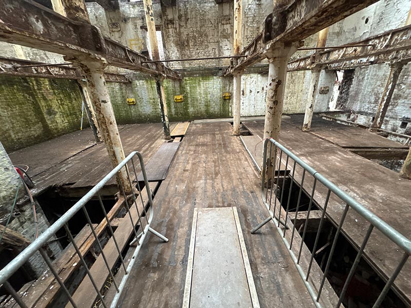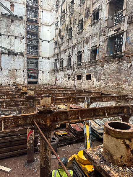 Crews have removed timber flooring, cast iron parts, and general debris.